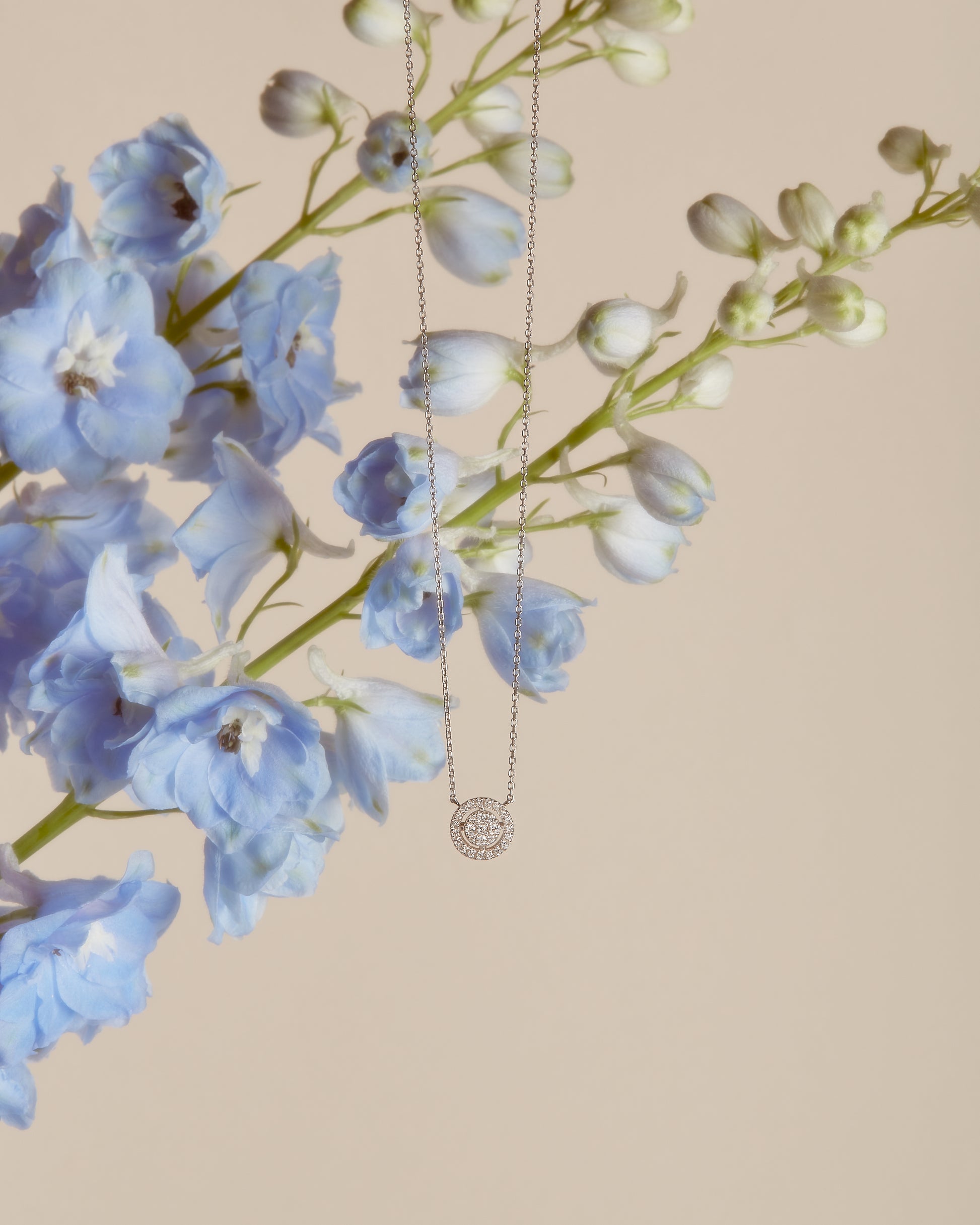 胸元でメレダイヤモンドが複雑に輝く"Circle pave necklace"で、意思のあるエレガンスを纏って。