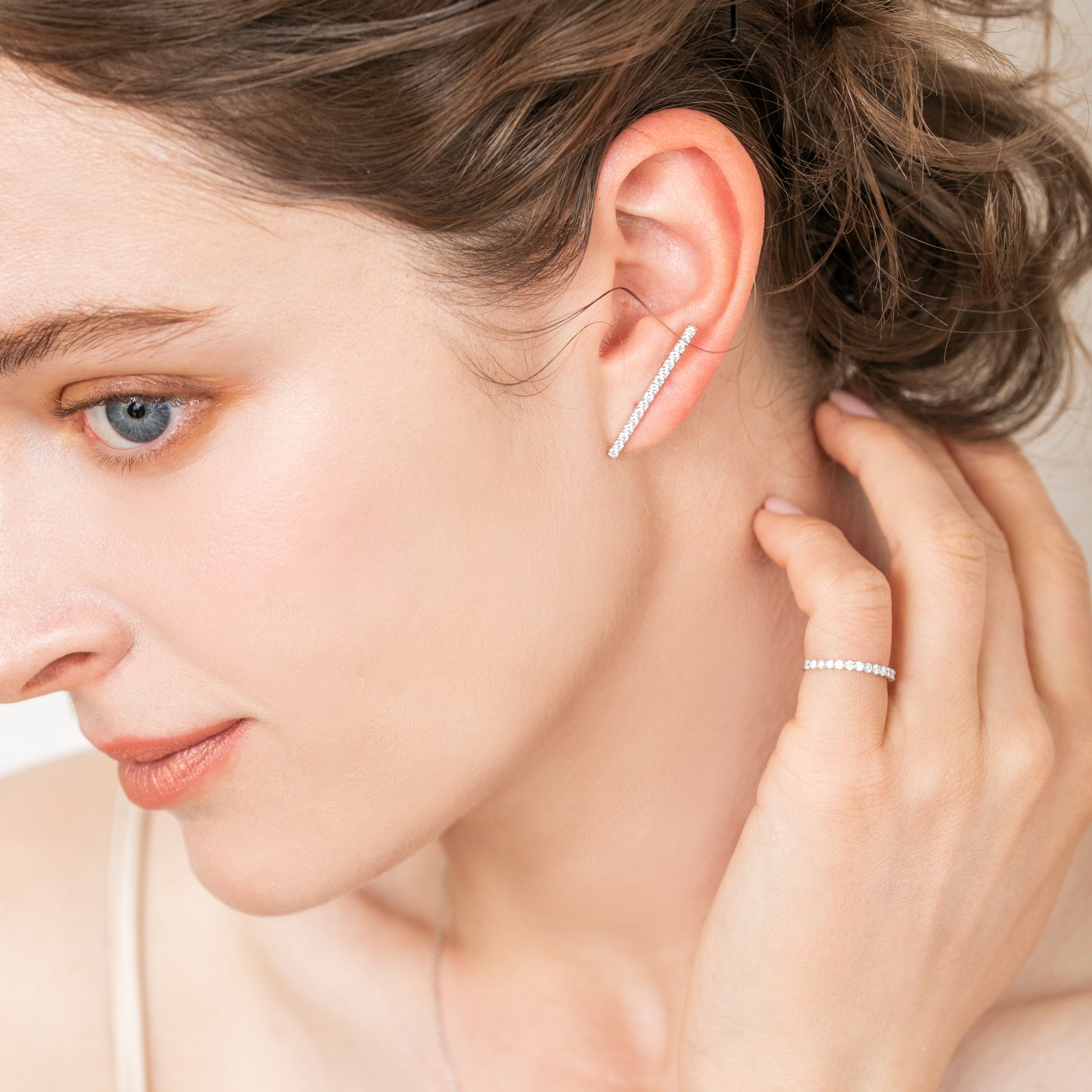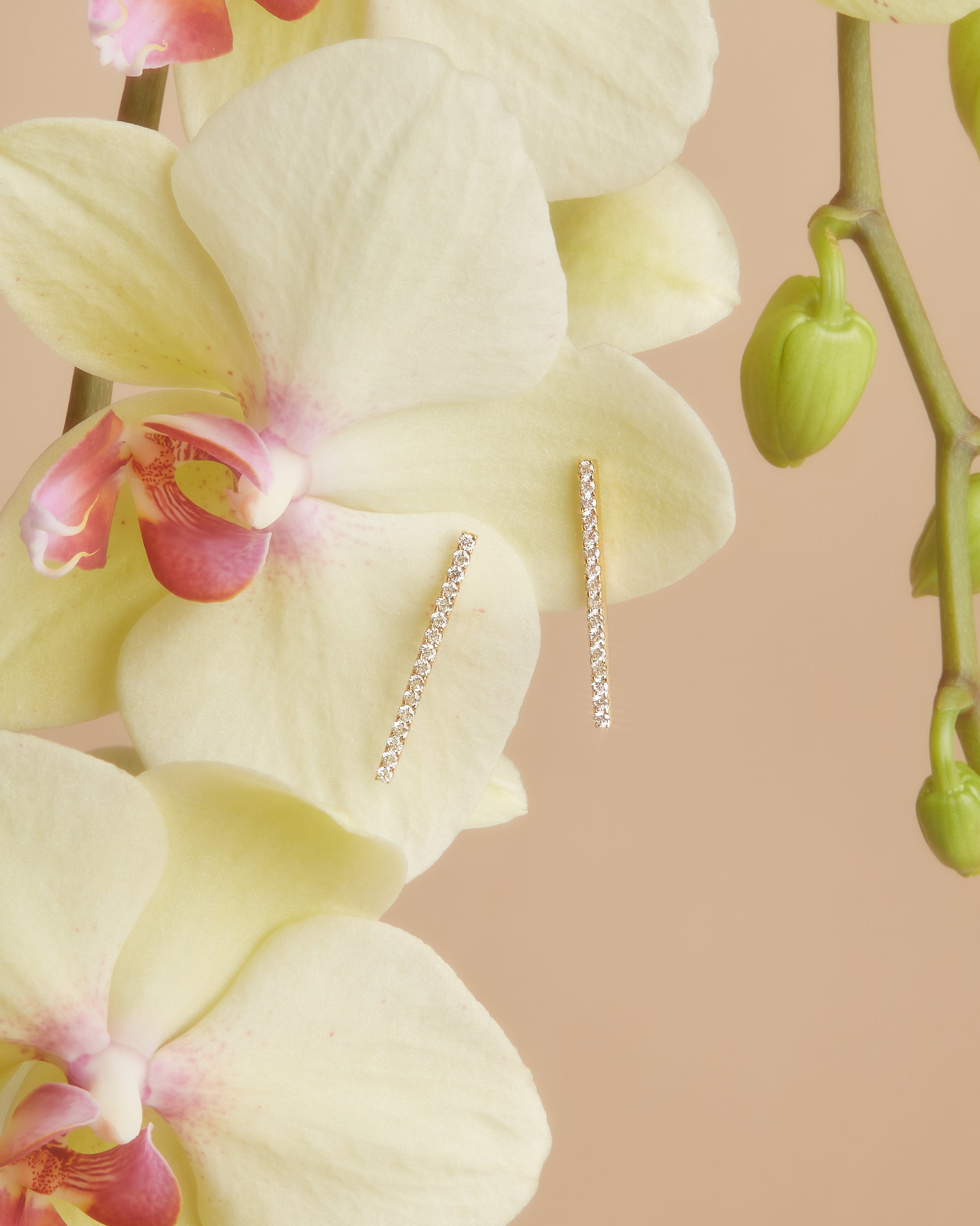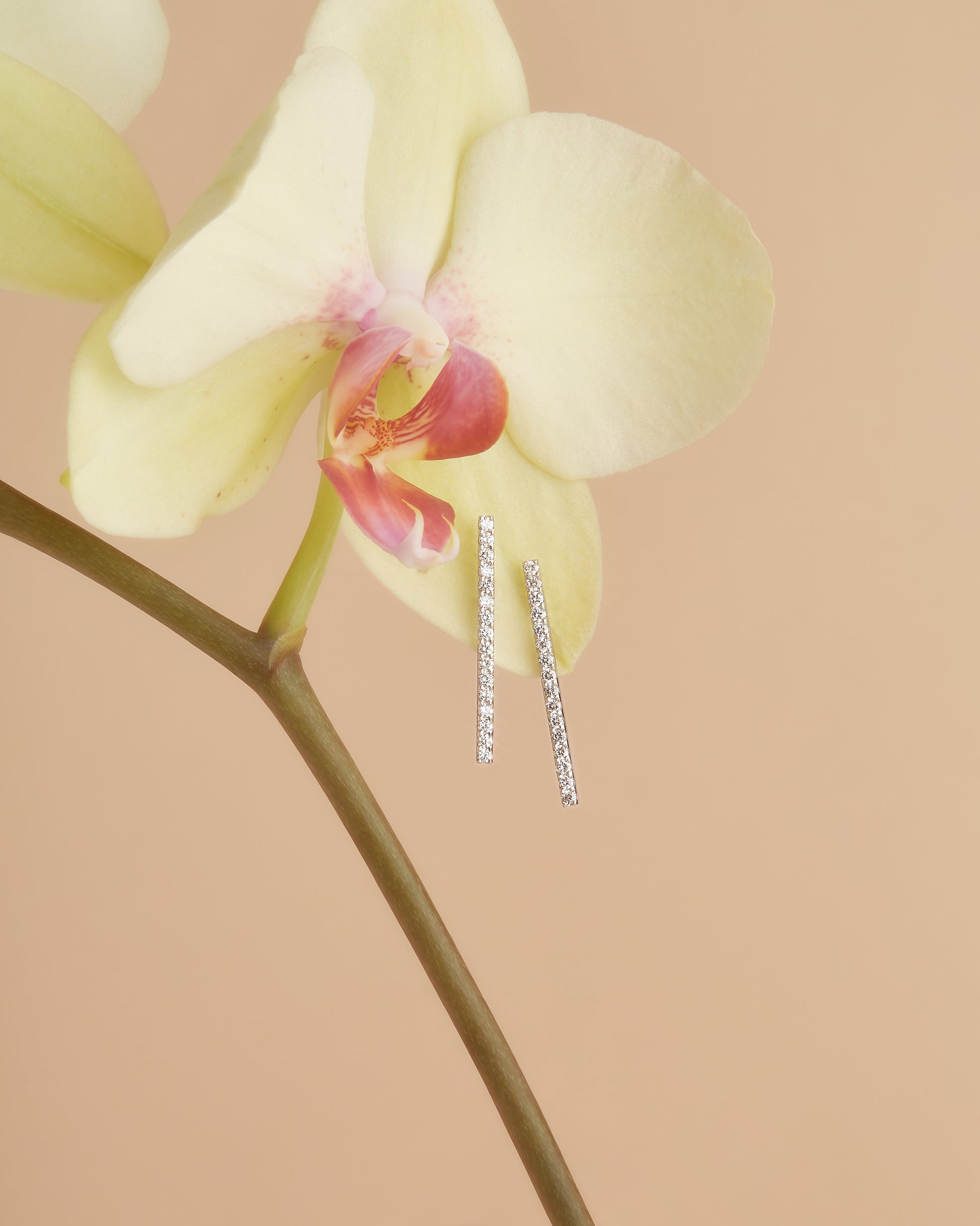 高グレードのダイヤモンド16石を贅沢に合計0.3ct使用(両耳ペア合計0.6ct)、美しくバー状にセッティングしたシンプルモダンで洗練されたデザイン。ダイヤモンドの裏には光穴を設け、高グレードのダイヤモンドを更に美しく引き立てます。