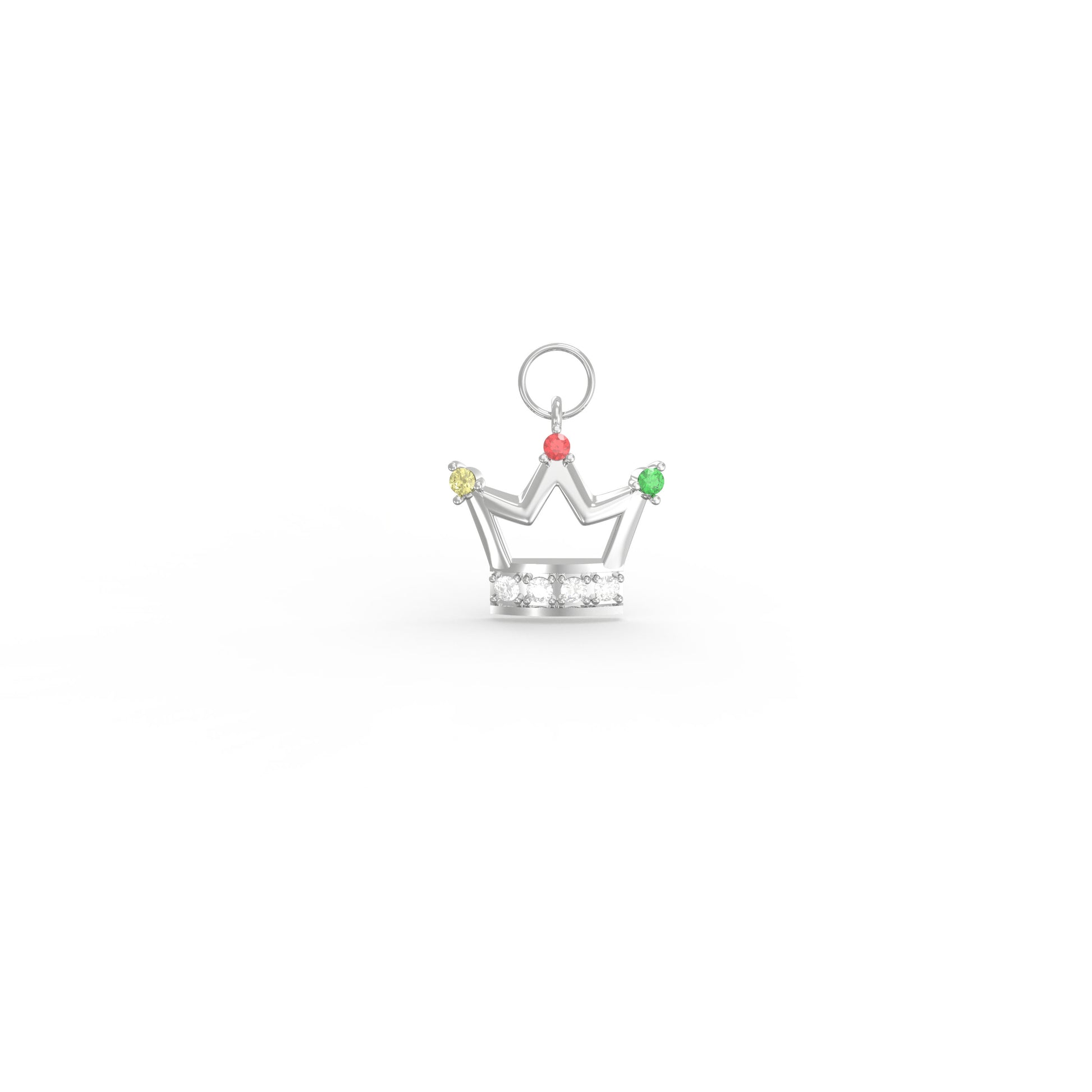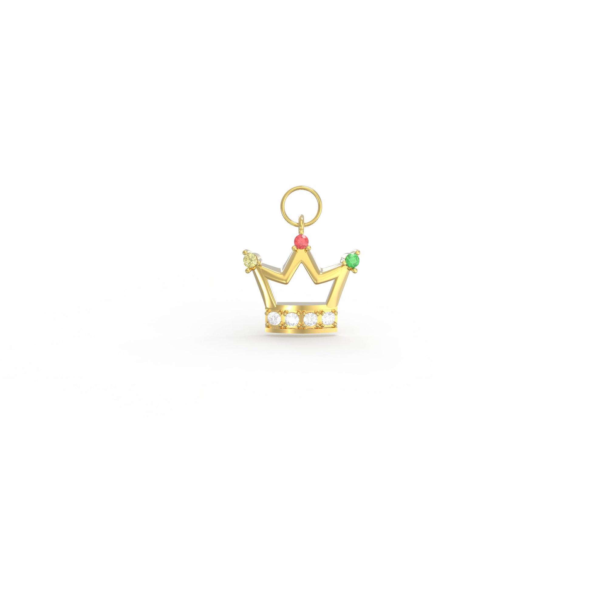 王冠のトップには、美しいグレード高きレッドサファイア・ゴールドサファイア・グリーンガーネットの色石を一粒ずつあしらい、最高等級グレードのラボグロウンダイヤモンドがさりげなく誇り高い輝きを王冠の下で支えます。
