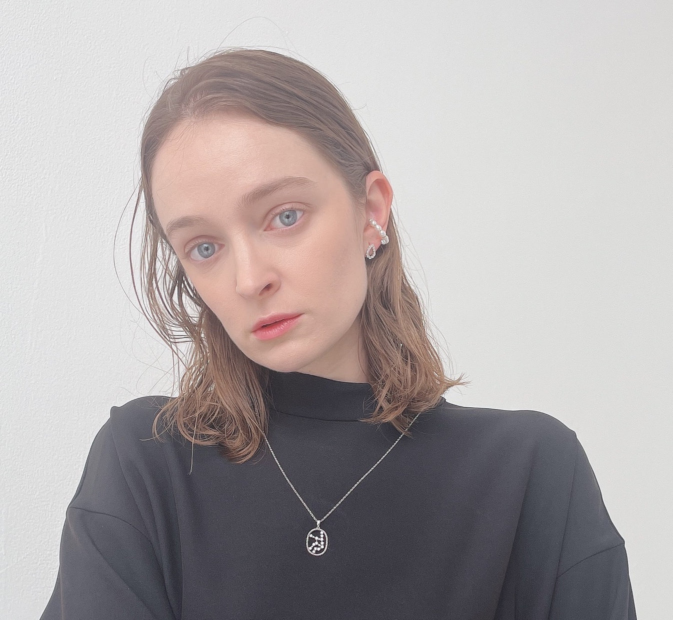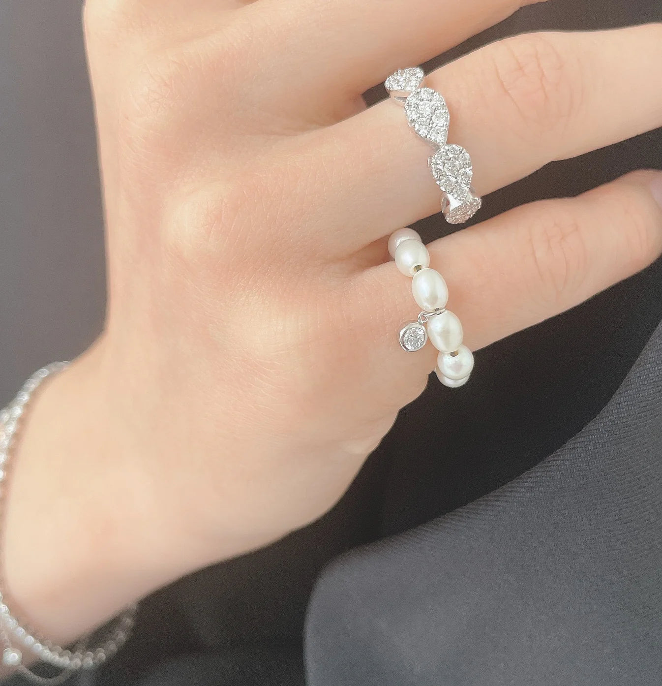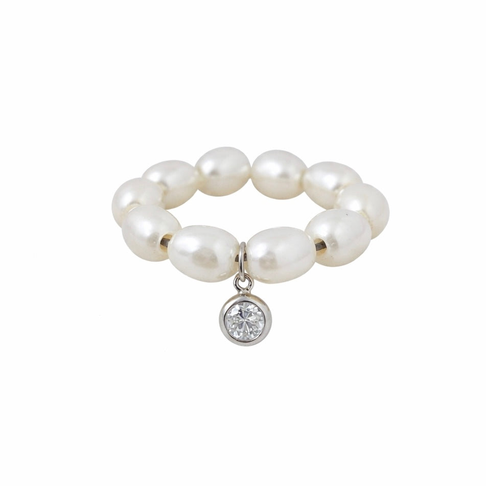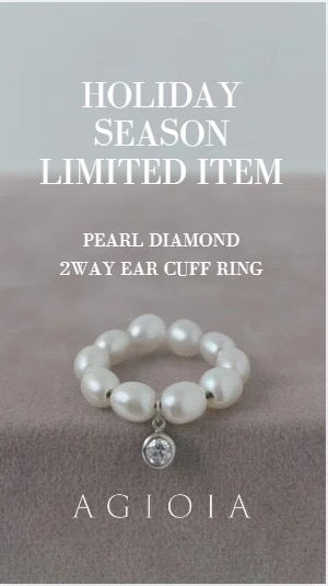 エタニティに配置したパールに、揺れるベゼルのダイヤモンドが輝く万能ジュエリー。フリーサイズのピンキーリングとしてもイヤーカフとしてもお使いいただけます。